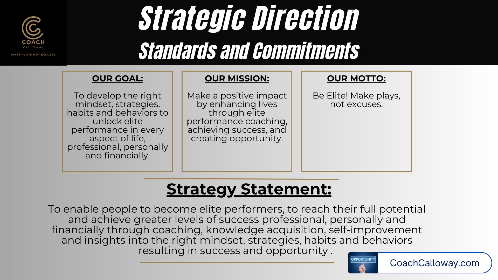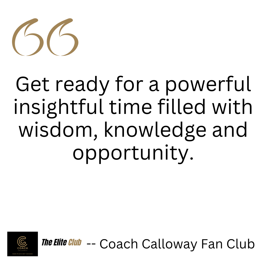 From the corporate boardroom, to the athletic field, to families and leaders across the world, Coach Calloway brings the energy, wisdom, and motivation to help you rise above the average and step into the champion you were created to be.